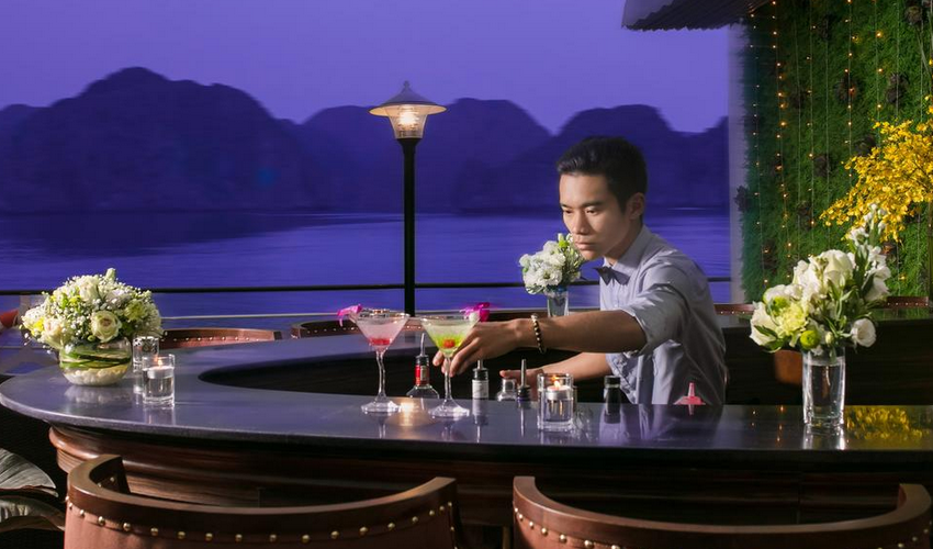 13:15: A special lunch of fresh seafood and an assortment of appetizing delicacies will be served. You will be enchanted when decadently dining on our luxury junk, our lavish interpretation of a traditional Vietnamese boat. Life just doesn’t get better than this! We then set sail for Lan Ha Bay, passing Da Chong islet where you can see an ancient lighthouse built by the French over a century ago.